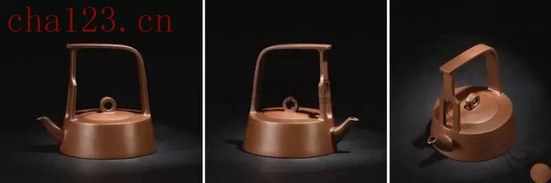 扁圆的壶身、棱角分明的三柱高提梁,从侧面看去如同一只飞翔的鹧鸪鸟的头部,故顾景舟大师为其命名“鹧鸪提梁壶”。