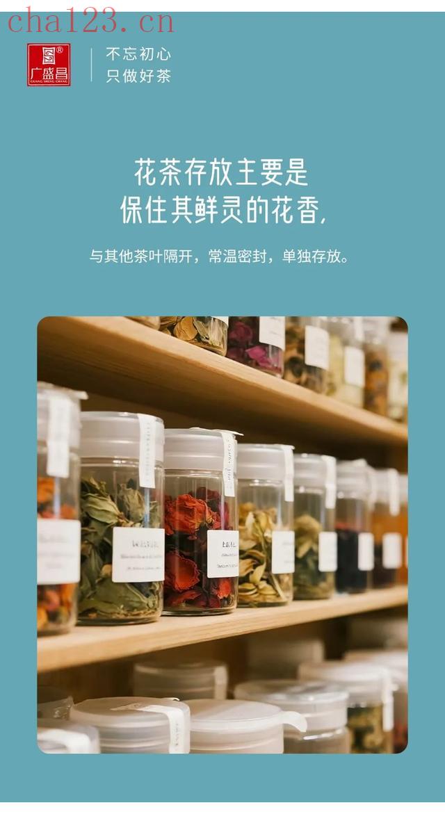 花茶的存放主要是保住其鲜灵的花香,原理同红茶,但因其香气分子活跃,密封性要求更高,且务必与其他茶叶隔开,以免香气互相干扰,因此需要常温密封,单独存放。