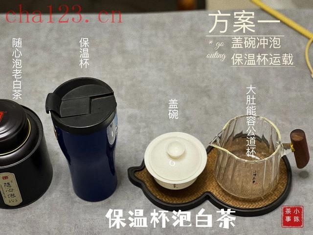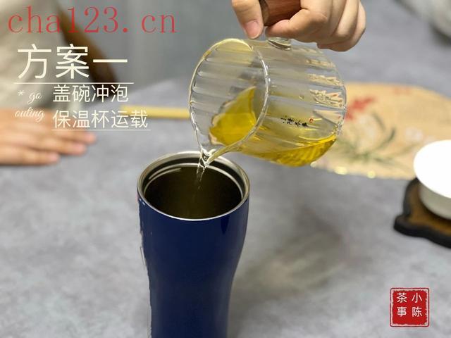 可以先用盖碗泡好茶汤,再将茶汤倒进保温杯中存放。