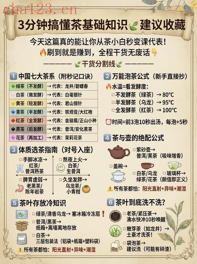 很多人喝茶总踩坑:买茶时被专业术语绕晕,只能盲目选贵的;朋友来访不知泡什么茶才合适;明明是品质上乘的好茶,自己泡出来却又苦又涩。其实喝茶没有那么玄乎,一位资深茶友总结8年经验,整理出从选茶、泡茶到存茶的实用技巧,新手照着做就能轻松喝到顺口好茶。