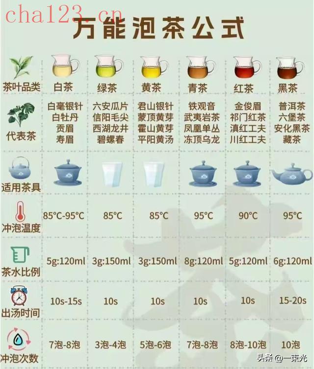 二、万能公式拆解:6大类茶的精准冲泡参数