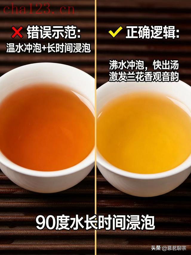 * ✅ **正确逻辑**:清香型铁观音的“兰花香”和“观音韵”必须靠沸水激发。若水温不足,茶叶无法舒展,香气沉闷,甚至会有“拖酸”的异味。长时间浸泡则会让茶汤变得苦涩如药。
