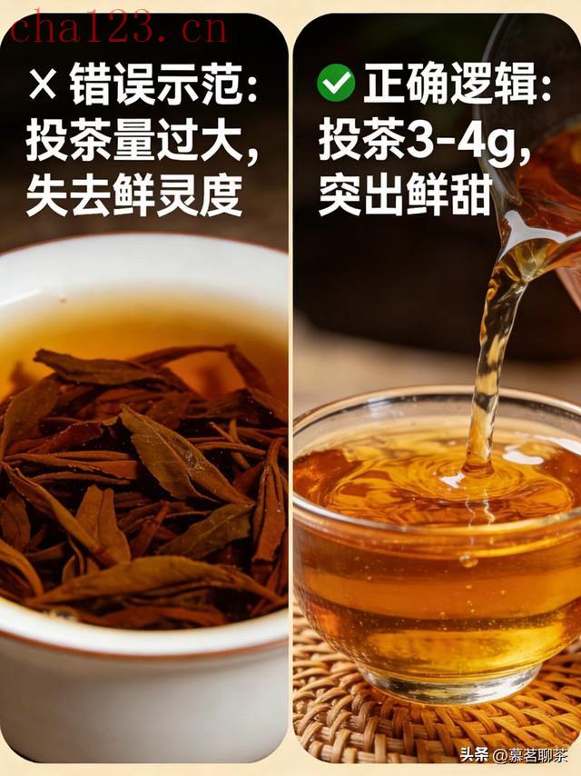 * ❌ **错误示范**:投茶量过大,导致茶汤过于浓厚,失去鲜灵度。
