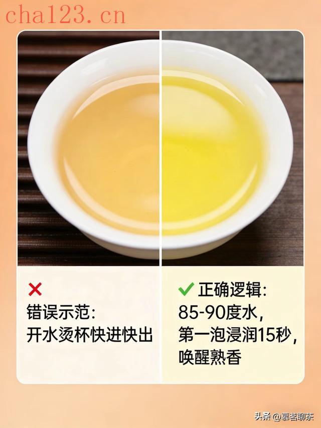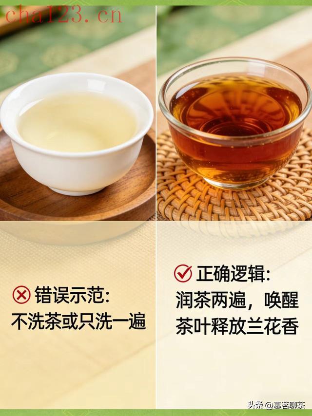 * ❌ **错误示范**:洗茶3遍,认为这样才干净;或者沸水注入后坐杯1分钟。