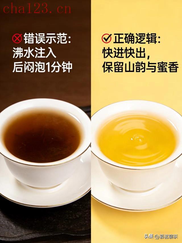 * ✅ **正确逻辑**:单丛以“高香”著称,尤其是鸭屎香等品种。闷泡会导致茶多酚过度析出,产生“苦涩锁喉”的感觉。必须 **“快进快出”** ,手速要快,才能喝到“山韵”和“蜜香”。