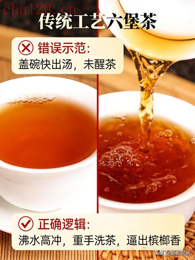 * ✅ **正确逻辑**:传统六堡茶(非现代渥堆)往往带有松烟味或独特的陈仓味。如果不经过高温润茶和适当闷泡,那股独特的“陈味”会让人觉得像“霉味”。必须用**沸水高冲**,且前两道洗茶要“重手”,才能逼出真正的槟榔香。