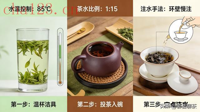 * **水温**:**80℃ - 85℃**(水烧开后晾凉1-2分钟)。