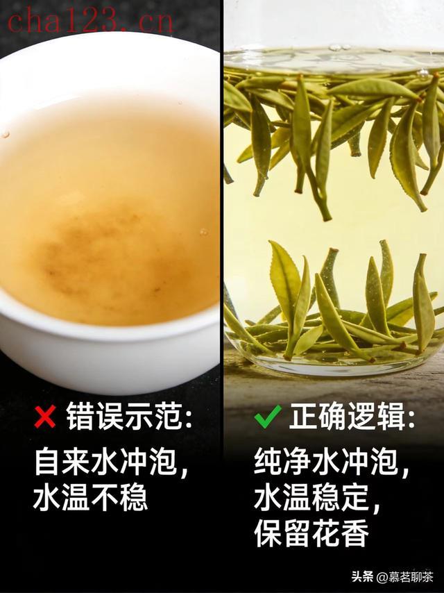 * ❌ **错误示范**:水温忽高忽低,或者用自来水冲泡。