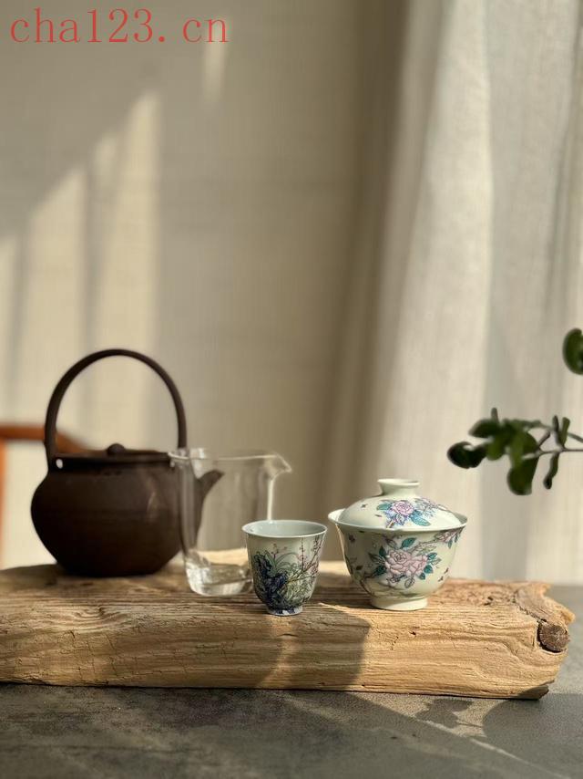 烫壶温杯后,将干茶投入尚有余温的盖碗中,借助热气激发干茶香气。