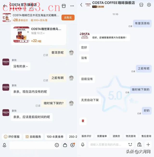 1月9日,界面新闻查询天猫平台“COSTA官方旗舰店”和京东平台“COSTA COFFEE咖啡旗舰店”,均未发现相关普洱茶产品。平台客服也称目前店铺内没有普洱茶,进一步追问下,天猫平台客服称:“(普洱茶)应该是前段时间下架的。”而京东平台客服则表示:“无货自动下架。”