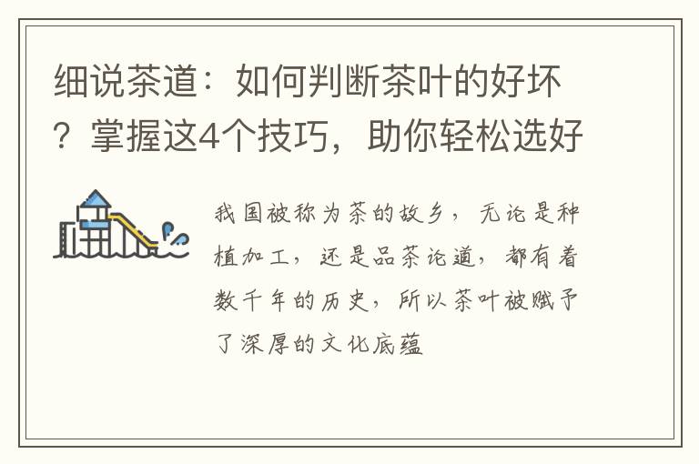好茶叶与劣质茶叶的区别:一文让您秒变茶叶鉴别达人大家好,今天咱来聊聊一个大家都关心的话题——茶叶。很