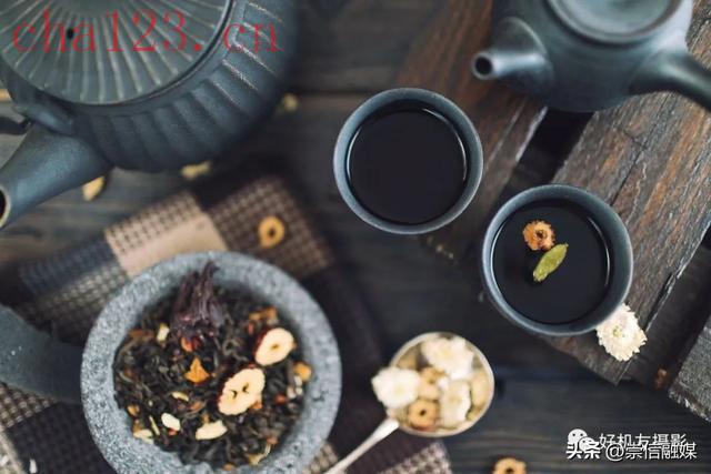 在拍摄时,要选择透明的茶杯。并且利用逆光,让茶水通透,茶叶突出。
