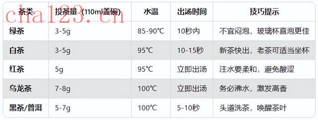 四、 不同茶类的冲泡秘诀(一张表格全搞定)
