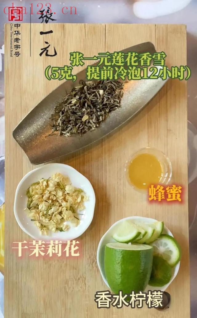 1.茶叶用200毫升的95℃热水冲泡5分钟,沥出后加冰冷却;