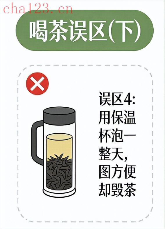 ❌ 误区4:用保温杯泡一整天,图方便却毁茶为了图方便,很多人会把茶叶放进保温杯里,用沸水冲泡后焖一整天。但保温杯的高温会持续“闷煮”茶叶,不仅会破坏茶叶中的茶多酚等有益成分,让茶汤变得苦涩难喝、失去原有的香气,还会让咖啡因等物质过度析出,刺激肠胃和神经。