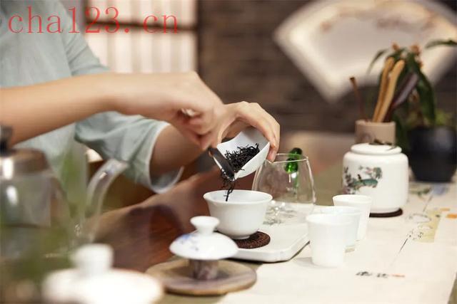 红茶的投茶量与绿茶差不多,铺满盖碗底部即可,也可以稍微多放一点。较为紧细的茶,如祁红、金骏眉,可以适量少放一点,投放量占盖碗1/5即可。