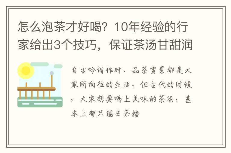 有没有人跟我一样,明明买的是好茶,自己泡出来却又苦又涩,要么就是淡得像白水?看着别人泡的茶清亮飘香,