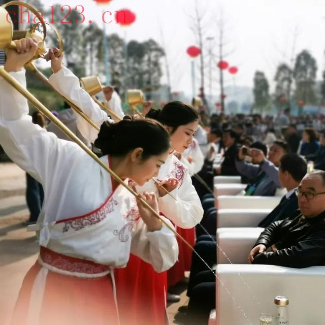 蒙顶山千年传承的“天风十二品”茶艺缓缓铺陈。茶艺师身着素雅汉服,依古法演绎温杯、投茶、醒茶、高冲、低斟等十二道工序,动作如清风拂叶,优雅从容。茶汤斟入白瓷杯时,氤氲茶香中仿佛可见蒙顶山云雾缭绕的春色。