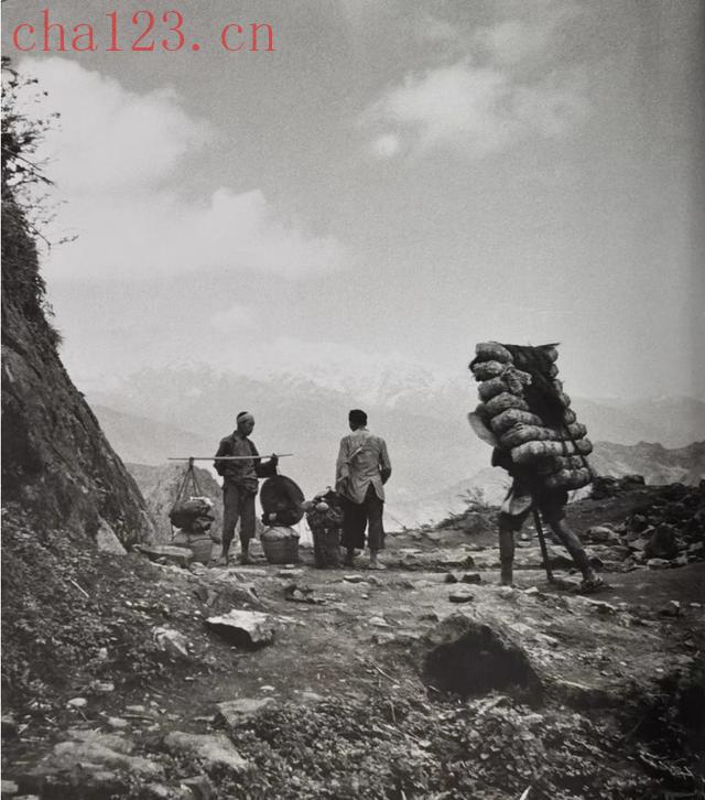▲20世纪30年代,背夫经过二郎山垭口(庄学本/摄)