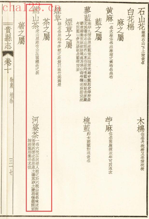 阿婆茶与龙山茶。貴縣志 卷十 物產植物 三一七