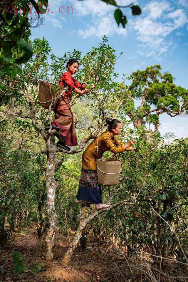 平常看到的、小团小团的“灌木形茶树”是经过精心修剪的,野生古茶树能到达十几米,需要爬树采摘;云南的古树茶王,树龄约3200年,也能采摘制茶