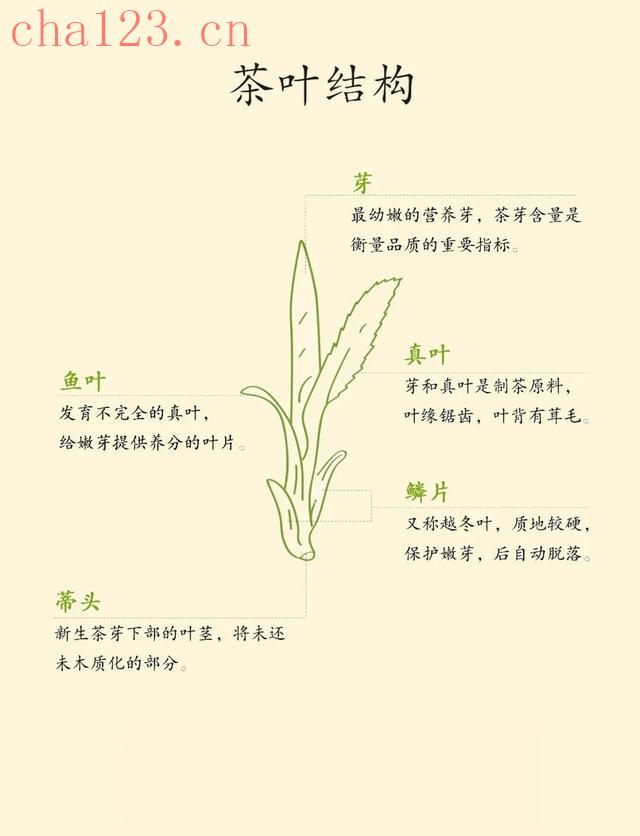 我们喝的茶,主要采自茶树上最嫩的部位——一芽一叶到一芽三叶。芽是还没展开的嫩尖,叶是刚舒展的新叶,这两个部位聚集了最多的茶多酚和氨基酸,喝起来鲜爽有劲儿。老叶子也能制茶,但氨基酸含量骤降,滋味淡寡,远不如嫩芽叶鲜活。