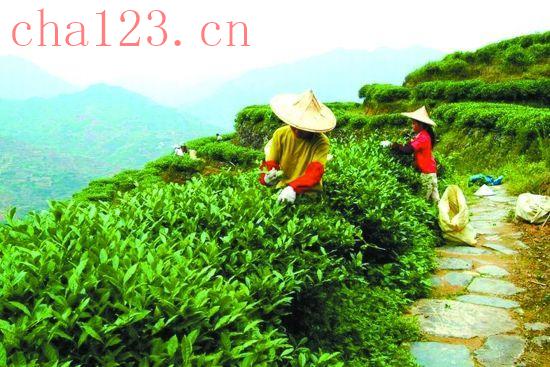 以食指与姆指挟住幼梗的中部,藉两指的力量将茶叶摘断,不同的茶采摘部位也就不同,有的采一个顶芽和芽旁的第一片叶子叫一心一叶,有的多采一叶叫一心二叶,也有一心三叶。