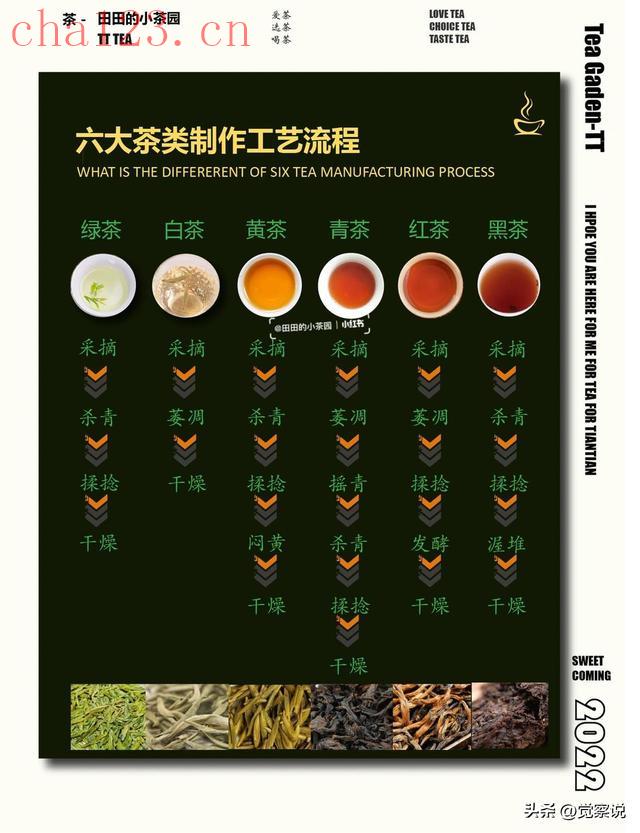 前面文字部分相对详细,主要介绍每种加工步骤的目的,其中的重点部分也都已经标识出来,节约大家时间。不想看文字的铁子们也先别急着划走,咱们最后有一图流,带您直观感受中华大地上的神奇树叶,都是怎么制成国民饮料的。