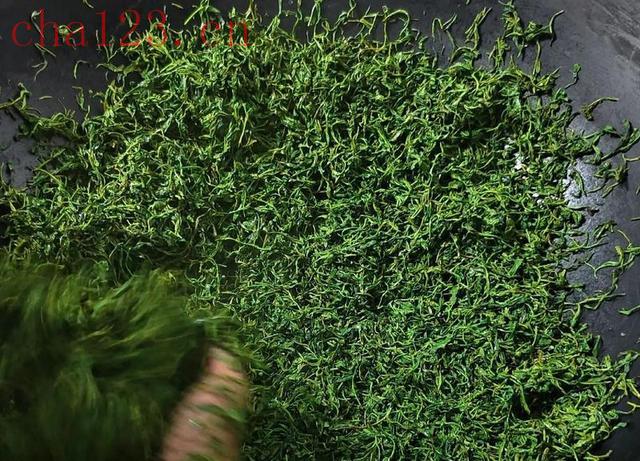 手工制作新茶烘焙翻炒时间要长一些。二次刹过青摊凉过的茶叶,灶火的温度此时控制把撑在20至30度,将二次刹过青的茶叶倒入大铁锅里,然后用双手适时不停地翻炒吧。当一锅新茶手工翻炒加工完成,时间约要耗去二个多小时,而每出一锅新茶,仅仅在一斤三两至一斤五两左右。