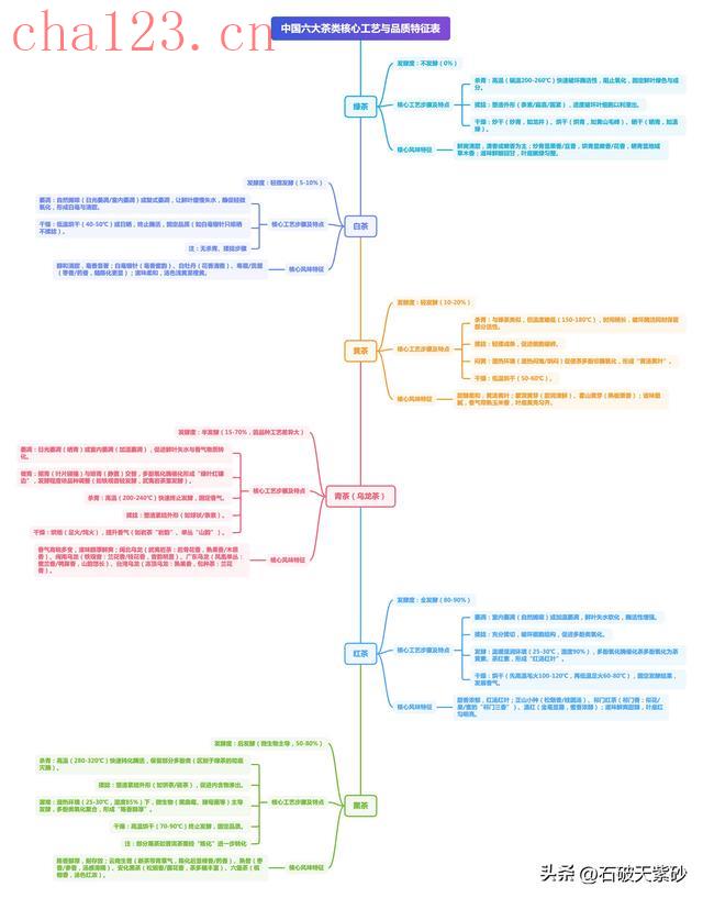 香气高锐多变,滋味醇厚鲜爽;闽北乌龙(武夷岩茶:岩骨花香,熟果香/木质香)、闽南乌龙(铁观音:兰花香/桂花香,音韵明显)、广东乌龙(凤凰单丛:蜜兰香/鸭屎香,山韵悠长)、台湾乌龙(冻顶乌龙:熟果香,包种茶:兰花香)。