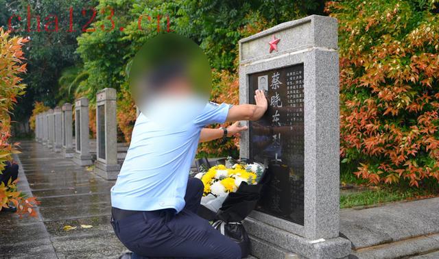 安晓华擦拭着蔡晓东烈士的墓碑。新华社发蔡晓东牺牲后