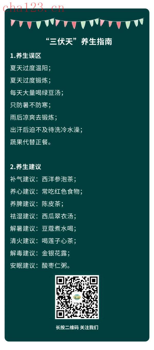 “三伏天”出汗多,容易耗气伤阴,导致体力、元气不足,机体功能下降。因此养生尤其要注重“养气”,以防到了冬天,阳气不足,抵御疾病的能力下降。