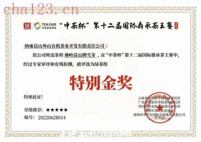 国庆前夕,接到李光举的电话,他用习以为常的口气告诉我,他公司的茶叶“彝岭苗山雪芽”和“乌蒙山宝奢香茶”在今年6月又获“茶王奖”了。这是有“中国茶界奥斯卡”之称的国内最具权威的“中茶杯国际鼎承茶王赛”最高奖,今年是第15届。我高兴地祝贺道:加上5月拿到的第十届亚太茶茗大赛金奖,你真是名副其实的“惯军”啊!