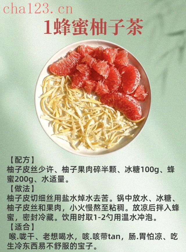1. 蜂蜜柚子茶(经典温饮)——润肺止咳必备