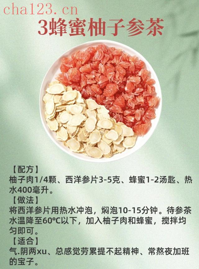 做法:柚子茶底加西洋参片3-5片,蜂蜜调味,焖泡5分钟。