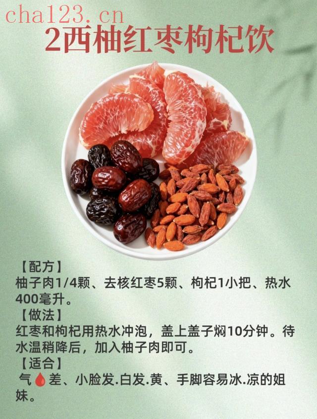 做法:西柚切片,加红枣5颗、枸杞1小把,热水焖泡10分钟。