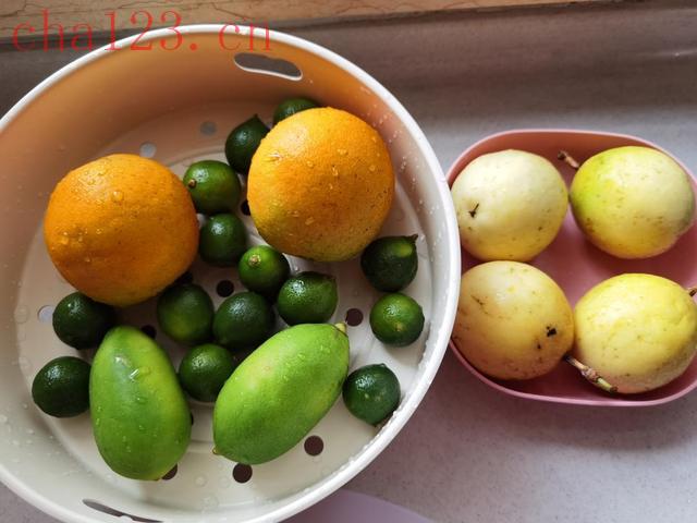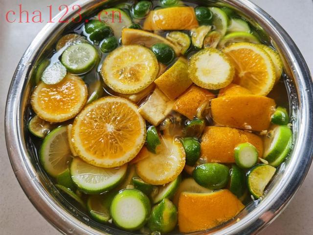 把青柠檬、小青柑、橙子仔细洗净表皮,然后切片去籽;百香果就简单了,直接挖出果肉备用。水果一定要选新鲜的,尤其是橙子,当季的新鲜橙子果皮香气特别浓郁,能给果茶增香不少。