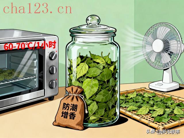 最后就是干燥和储存了。要是用烤箱,就调60到70℃低温烘1小时,中间多翻几次,别烤焦了;要是想自然晾干,得放2到3天,要是赶上阴雨天,就用风扇开低速吹着,别让叶子受潮。保存的时候,找个密封罐,放一包干燥的陈皮进去,既能防潮,还能让茶带点陈皮的香味,一举两得。