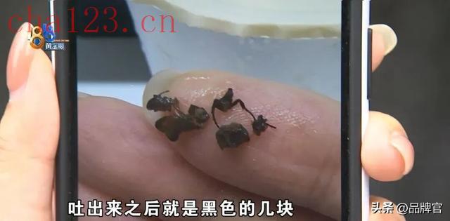 “吸出了一个类似钢丝球状态的东西,因为在嘴巴里不确定是什么东西不敢下咽,吐出来用手指捻开发现是一团昆虫尸体,有昆虫腿部、头部、翅膀等。”