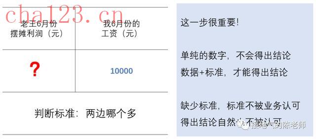 某天,你的朋友老王对你说:“还上啥班呀,你看你上班一个月才1万块,还不如像我一样卖手抓饼呢,比你上班挣得多多了!”你又吃惊,又好奇。卖手抓饼真的比上班挣得多多了?为了解答这个问题,你得做个分析。前边老王对你说的话,用专业话说叫:了解分析背景。