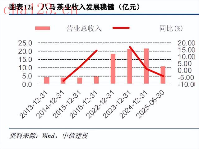 五、个股情况:八马茶业在行业中领先“茶中茅台”将于港交所上市,业绩增长平稳。八马茶业是定位于高端茶叶的中国最大茶叶流通企业。八 马茶业的创始人王文礼,出身福建安溪铁观音名门王氏家族。八马茶业的梦想是做“茶中茅台”。《21 世纪经济 报道》曾于 2010 年报道称,王文礼说,LV 的包能卖那么贵,茶叶也可以,关键在于品牌背后的附加价值。“八 马”这个颇为生僻的名字,意味着高质量和贵族气质——在中国古代,用八匹马拉车(周穆王,超越天子六匹 马的礼制),象征着高贵。 据招股书,2022 年-2025 年上半年,八马茶业收入分别为 18.18 亿元、21.22 亿元、21.43 亿元和 10.63 亿元; 净利润则分别为 1.66 亿元、2.06 亿元、2.24 亿元和 1.2 亿元,发展态势良好。 值得关注的是,八马茶业的毛利率表现尤为亮眼:2022 年至 2024 年及 2025 年上半年,公司毛利率分别为 53.3%、52.3%、55.0%及 55.3%。这与其高端化发展路线有关。
