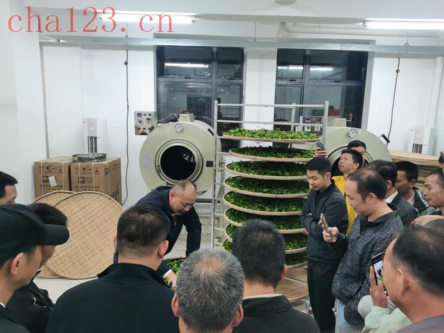 为确保培训效果,让各位学员均有机会体验设备、参与实操,各参训学员分组实操制茶。两位老师通过理论讲解与现场演示相结合,带领学员们还原了单丛茶制作过程中晒青、晾青、做青、杀青、揉捻、烘焙等每一道工序的诀窍要点,使培训内容可感知、可触摸、可体验。