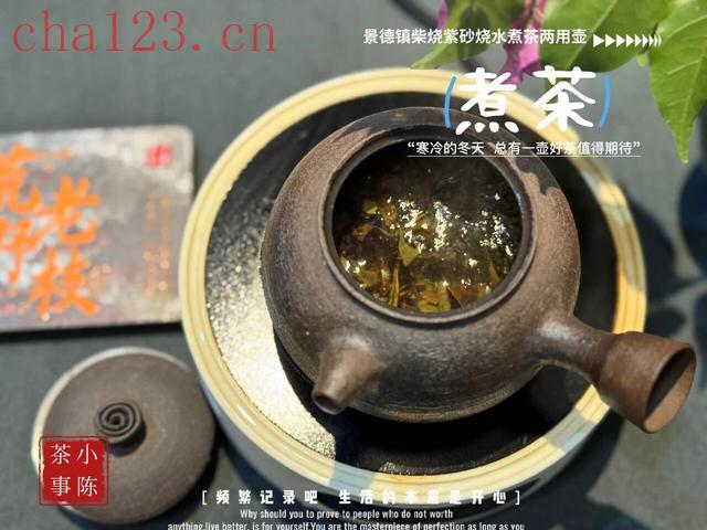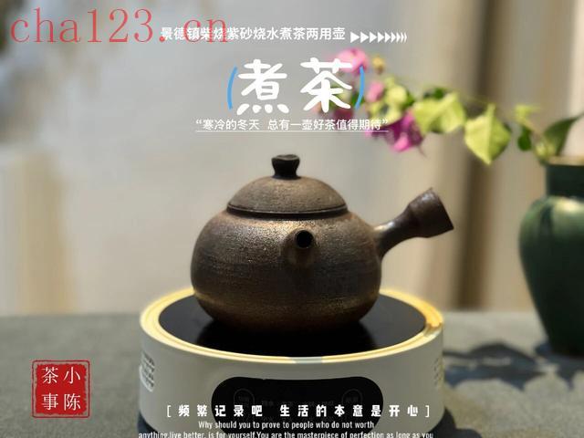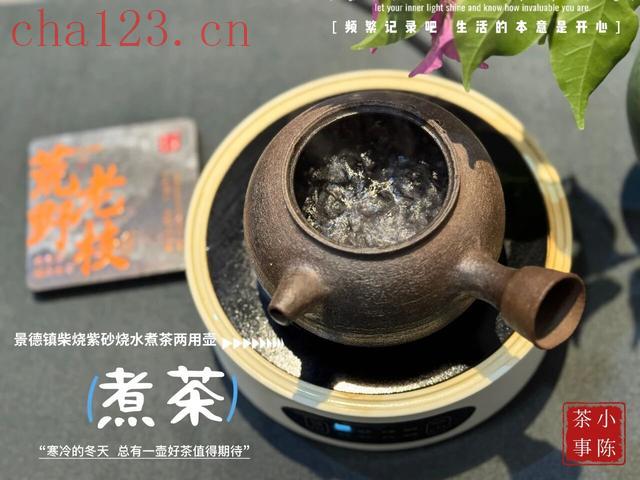 今天拿出来煮茶的,仍旧是去年在景德镇订制的柴烧紫砂烧水两用煮茶壶。