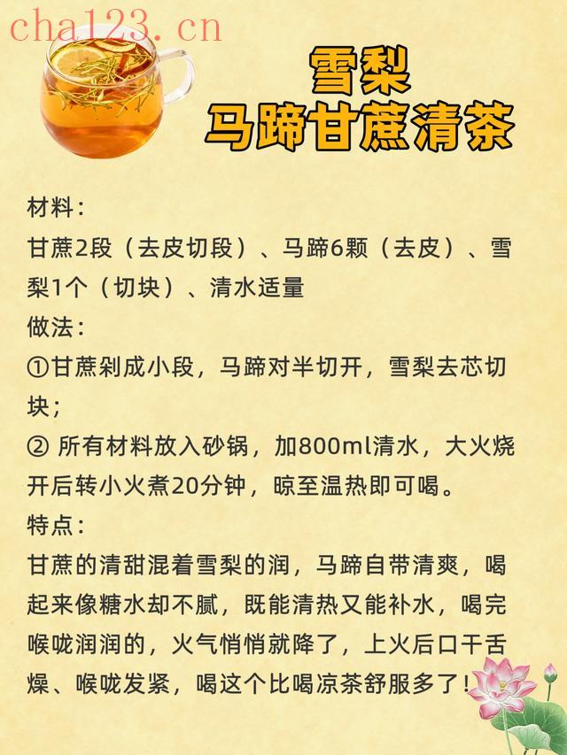 甘蔗的清甜混着雪梨的润,马蹄自带清爽,喝起来像糖水却不腻,既能清热又能补水,喝完喉咙润润的,火气悄悄就降了,上火后口干舌燥、喉咙发紧,喝这个比喝凉茶舒服多了!