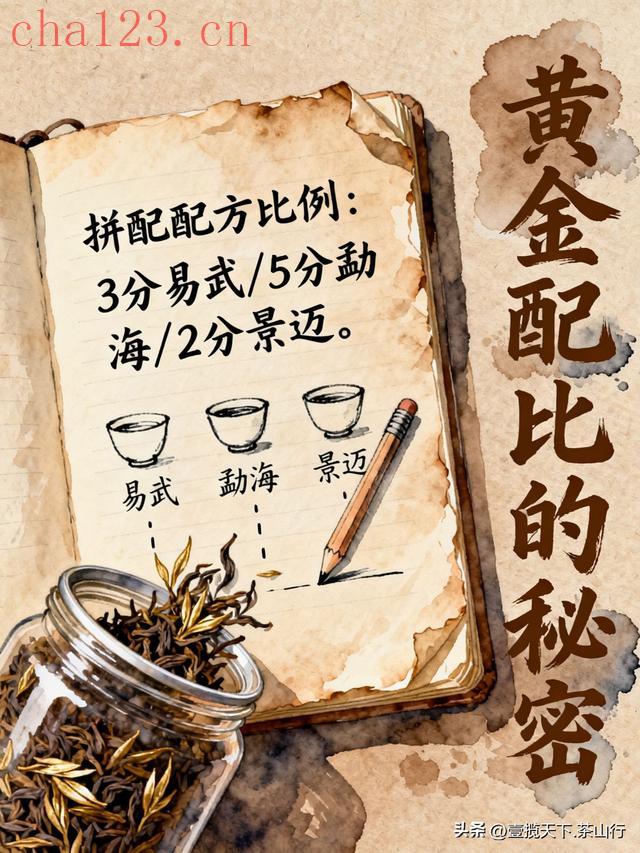 PART.02、顶级拼配的3个讲究"别觉得拼配就是随便混,顶级拼配比找纯料还难,要过原料、比例、口感三关,我调试一款配方,光试喝就用了几十斤茶",茶农兄弟边说边从抽屉里翻出一本旧笔记本,里面记满了密密麻麻的配方:"2022.3.15:易武4 勐海5 景迈1——甜淡香弱;2022.4.20:易武3 勐海5 景迈2——甜厚香均衡……"