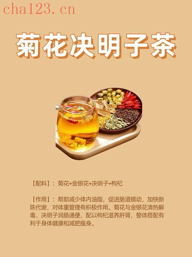 4. 菊花决明子茶——刮脂通便款材料:菊花5朵、金银花3g、决明子3g、枸杞5粒