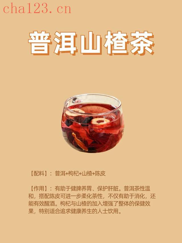 3. 普洱山楂茶——醒酒养胃款材料:普洱茶包1个、山楂5片、陈皮5g、枸杞5粒
