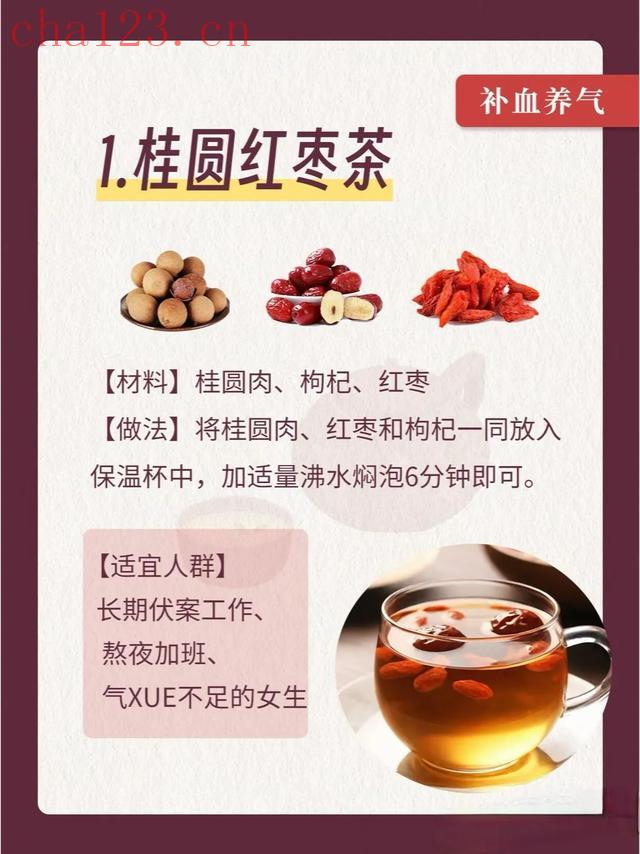 1. 生姜红枣桂圆茶——驱寒暖宫,姨妈不疼◦ 食材:生姜2片、红枣4颗(去核)、桂圆5颗(去壳)