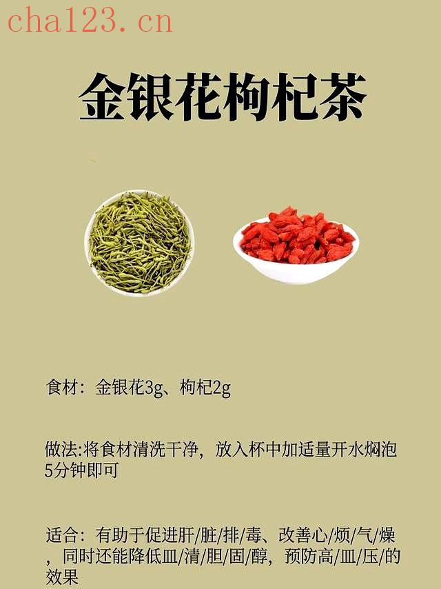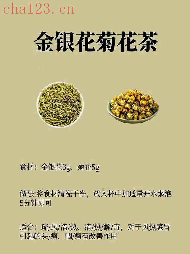 1. 金银花 菊花(换季嗓子痛、头胀、用眼多)