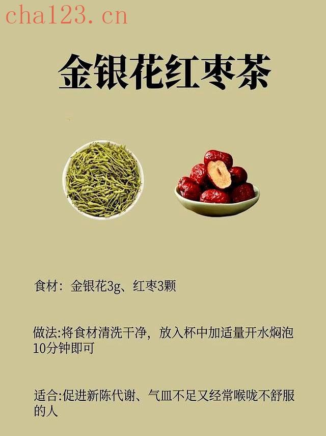 用量:金银花3g、红枣3颗(去核拍裂更出味)